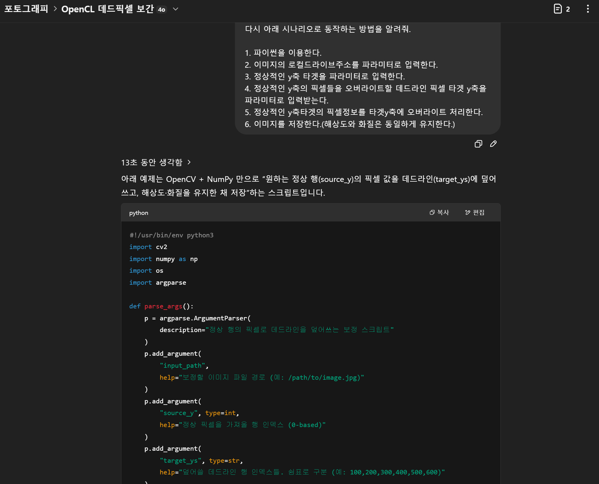 개발자이지만 스크립트 언어를 파워풀하게 사용하지 못하는지라 챗지피티에게 시켜보았다.